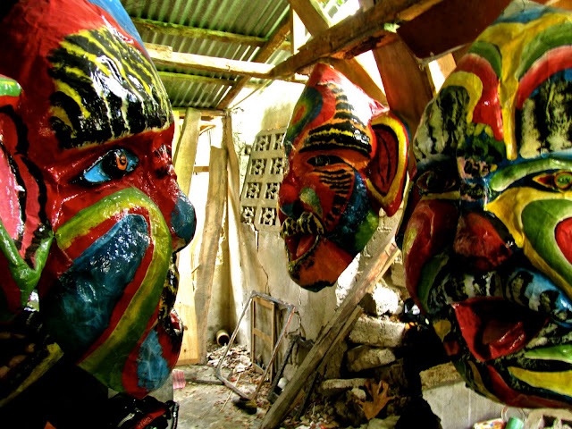 - A mask waits to be painted.
