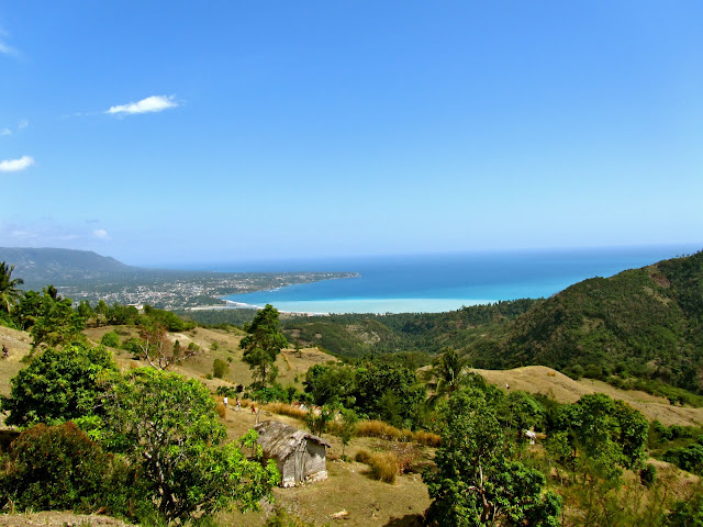 On the way to Bassin Bleu- a quick stop (before getting mobbed by small children) at a view point over-looking the city as we made our way up the rough track over a mountain. Such a gorgeous place. Note the white bit at the edge of the ocean. All the sand's white here, causing the effect.